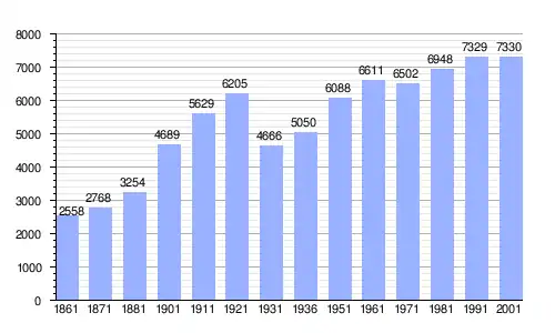 | Gráfica de evolución demográfica de Petrosino entre 1861 y 2001 |