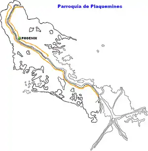 Localización de Phoenix en el mapa de la Parroquia de Plaquemines.