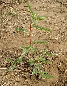 Es un pequeño arbusto que crece a una altura de hasta 50 cm, silvestre, anual y de tallo erguido.[1] Sus hojas son de 7 a 17 mm de largo,[1] alternas, sésiles oblongas; flores pequeñas de color blanquecino-verdoso, solitarias, axilares, apétalas monoicas.