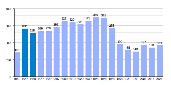 | Gráfica de evolución demográfica de Piñuécar-Gandullas[1] entre 1842 y 2021 |