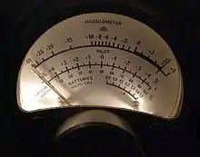 El modulómetro es un modelo de propietario del tipo cuasi-picómetro, encontrado en los productos Nagra. Posee un tiempo de integración (−2 dB) de 7.5 ms,[20] así como una escala semi-logarítmica con una apariencia entre aquella del vúmetro y una de un picómetro tipo DIN. Una versión estéreo ("modulómetro doble") usa un movimiento con dos agujas coaxiales.
