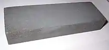 - Piedras de material sintético. Suelen estar elaboradas de materiales cerámicos abrasivos como el carburo de silicio (carborundo) u óxido de aluminio (corindón). Se suelen comercializar piedras de este tipo con dos clases de grano, fino por un lado y grueso por otro.