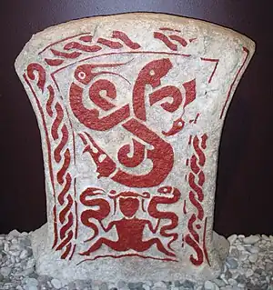 Las serpientes fueron populares como motivo en posteriores grabados de piedra mostrando hoyos de serpiente, usado como una dolorosa forma de ejecución; esta forma de castigo está reflejada en las sagas nórdicas. Tuvieron un especial significado y simbolismo durante la Cristianización, la transición del paganismo hacia la conversión. Frecuentemente se combinaban con ciervos, crustáceos o bestias sobrenaturales. El propósito pudo ser proteger las piedras y detener a gente que quisiera destruirlas.[6]