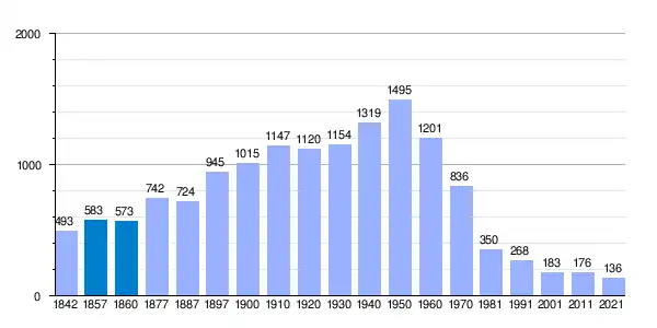 Su población ha sufrido una gran disminución desde los años 50, cuando eran unas 1500 personas, perdiendo el 80 % de su gente debido sobre todo a la emigración a otros lugares de España y del extranjero, como consecuencia del desarrollismo y de las escasas perspectivas que ofrecía la agricultura y la ganadería de la zona.