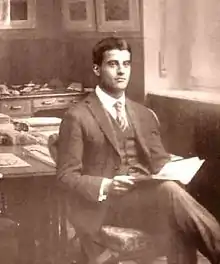![]() Laico católico y montañero italiano. En la foto, en la oficina de su padre; 1920. | ||
