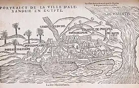 Vista de Alejandría en documento Observations de Plusieurs Singularités, 1553.