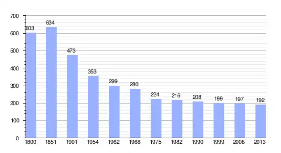 Los datos demográficos contemplados en este gráfico de la comuna de Pierres[4] se han cogido de 1800 a 1999 de la página francesa EHESS/Cassini, y los demás datos de la página del INSEE.[5]