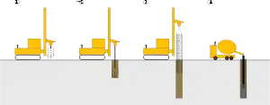 La denominación se aplica cuando el método constructivo consiste en realizar una perforación en el suelo a la cual, una vez terminada, se le colocará un armado en su interior y posteriormente se rellenará con hormigón.