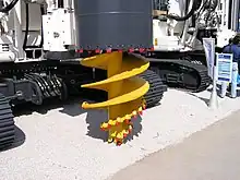 Se trata de pilotes por desplazamiento de las tierras por medio de una barrena continua. Posteriormente se ejecuta el hormigonado por bombeo por el tubo central existente en el interior de la barrena.
