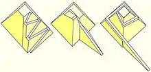 Para obtener las características de un cuerpo piramidal cuadrangular se crean alternativamente varios cuadrados, un sobre el otro, siempre disminuyendo de manera proporcional su medida. Este cálculo geométrico, que parece simple, cuando se tiene que realizar en una escala monumental requiere una gran precisión, puesto que con tan solo una pequeña desviación en las diagonales, la cúspide quedaría descentrada. Los constructores egipcios tenían una medida denominada codo real egipcio (mḥ nsw) que son unos 52,4 centímetros, y podían obtener la pendiente midiendo unidades de altura y base. Para la inclinación de la pirámide de Keops tendrían que haber medido 14 unidades hacia arriba y 11 hacia el interior.[23]