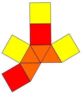 | Dual de la pirámide cuadrada elongada | Desarrollo plano del dual |