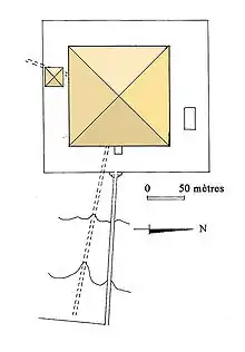 Plano del complejo funerario de Meidum (punteado, los vestigios de una rampa).