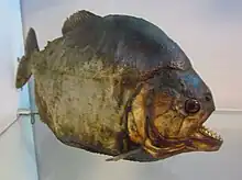 Se denomina habitualmente pirañas a varias especies de peces de voraces hábitos carnívoros (ocasionalmente o en sus etapas juveniles también omnívoros)[1] que viven en los ríos de aguas templado-cálidas y cálidas de Sudamérica. La denominación incluye algunos géneros dentro de la subfamilia Serrasalminae, la cual también contiene géneros de peces herbívoros y omnívoros típicos. Las pirañas miden entre 15 y 25 cm de longitud, aunque se han encontrado ejemplares que superan los 34 cm.