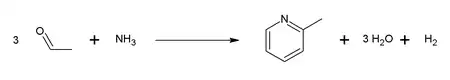 En una reacción similar se sintetiza 2-picolina a partir de acetaldehído y amoniaco:[63]