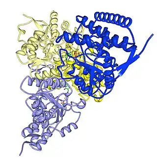![]() Piruvato deshidrogenasa humana cadenas alfa y beta. PDB 1NI4. | ||||