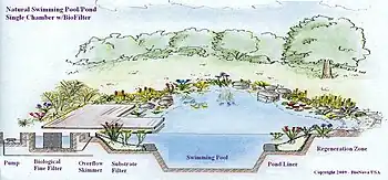 Una biopiscina, piscina natural o piscina naturalizada es una piscina que utiliza sistemas de depuración naturales (plantas, etc.) en vez de químicos (cloro) o físicos (UV).