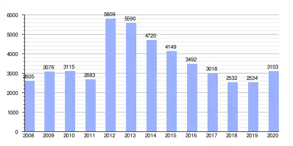 | Gráfica de evolución demográfica de Pizarra[2] entre 1842 y 2021 |