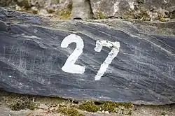 Roca pizarra en un parque geológico de Berlín (parque Blankenfelde-Pankow).