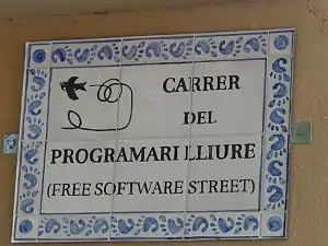 - Calle del software libre (en catalán : Carrer del Programari Lliure), Berga, Provincia de Barcelona (España) ; al acto de inauguración ocurrido el 3 de julio de 2010, concurrió el propio Richard Stallman (fundador del movimiento por el software libre).