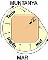 Con respecto a la orientación, las vías discurren en dirección paralela al mar, unas, y perpendicular, las otras, eso hace que la orientación de los vértices de los cuadrados coincida con los puntos cardinales y por lo tanto todos sus lados tengan luz directa del sol a lo largo del día, denotando una vez más la importancia que el diseñador concede al fenómeno solar.