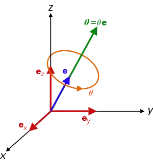 En cualquier rotación en tres dimensiones siempre hay un eje fijo, el eje de rotación. La rotación se puede describir definiendo este eje, con el ángulo a través del cual la rotación gira alrededor de él; esta es la notación axial-angular de una rotación. El plano de rotación es el plano ortogonal a este eje, por lo que el eje es un vector normal del plano. La rotación hace girar este plano al mismo ángulo que gira alrededor del eje, es decir, todo en el plano gira en el mismo ángulo alrededor del origen.