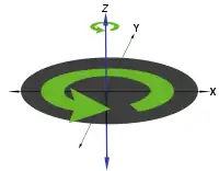 Un ejemplo se muestra en el diagrama, donde la rotación tiene lugar alrededor del eje z. El plano de rotación es el plano xy, por lo que todos sus puntos se mantienen en el propio plano tras la rotación. Esto podría ser descrito por una matriz como la siguiente, con la rotación a través de un ángulo θ (respecto al eje o en el plano):