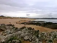 Es una playa de grandes dimensiones, caracterizada por una arena clara y fina y con grandes dunas situadas junto a un pinar. Alterna la zona oriental, más rocosa, con la occidental con apenas rocas. Es frecuente que haya un fuerte oleaje por lo que resulta un lugar idóneo para los surfistas. Las mareas son muy acentuadas y debido a su tamaño y peligrosidad dispone de un equipo amplio de socorristas. Destaca además por su paisaje de pradera oceánica y goza de bonitas vistas y espectaculares puestas de sol.