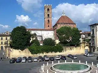 ![]() La Plaza Antelminelli con la Iglesia de San Giovanni y Santa Reparata al fondo. | ||