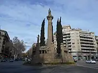 En la plaza se encuentra el monumento a Mosén Jacint Verdaguer (también conocido como El cuervo o La palmatoria), que está considerado como Bien Cultural de Interés Local (BCIL) en el Inventario del Patrimonio Cultural catalán con el código 08019/1467.[5] Realizado entre 1914 y 1924, fue obra del escultor Joan Borrell i Nicolau, en conjunción con el arquitecto Josep Maria Pericas. Borrell se encargó de la figura del poeta y las de la balaustrada, y contó con la ayuda de los hermanos Miquel y Llucià Oslé para los relieves de la base.[6]