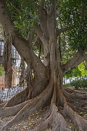 Destaca en la plaza la presencia de dos grandes Ficus (Ficus macrophylla) en la zona más próxima a la calle Alfonso XII. En el extremo opuesto hay un solitario magnolio (Magnolia grandiflora). El resto de la vegetación son jacarandas (Jacaranda mimosaefolia), palmeras (Phoenix dactylifera) y naranjos (Citrus aurantium).[10]