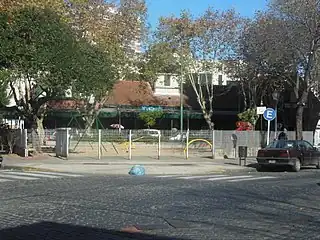 Se encuentra frente a la estación ferroviaria, estando delimitada por las calles Helguera, Pedro Lozano y Ricardo Gutiérrez.