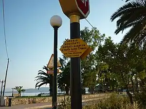 Unos metros al oeste de la conducción hay otra que pasa por debajo de la misma carretera, pero sin llegar al delta. Su agua procede de una aparente acequia junto a la carretera periférica de Itea. Hacia el norte, esta acequia abandona la carretera y se convierte en un canal controlado que atraviesa los olivares. A lo largo de ella hay caseríos privados y pasarelas. El canal es continuo con el arroyo del valle de Pleistos. El lecho visible suele estar seco.[2] Si Pleistos significa "lleno", como dicen algunos, el uso debe ser una ironía.