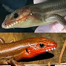 - Escamas poslabiales superiores agrandadas.
