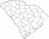 Ubicación en el condado de McCormick y en el estado de Carolina del Sur
