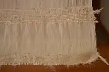 Las telas confeccionadas con plumas del área mesoamericana se hacían con hilo de fibra de algodón y plumas, ya que los huipiles nupciales actuales contienen plumas en hilado con hilo de algodón.[23][32]