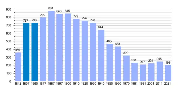 | Gráfica de evolución demográfica de La Pobla de Cérvoles[4] entre 1842 y 2021 |