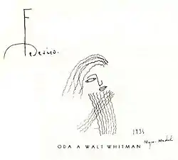- Oda a Walt Whitman: se conserva un manuscrito, fechado el 15 de junio de 1930, perteneciente a Rafael Martínez Nadal, publicándose en 1934 en Poesía española. Antología, de Gerardo Diego. En este poema simboliza en la figura de Walt Whitman el amor auténtico, inmaculado, puro, hermoso, contrapuesto a la fealdad y horror de los «maricas», los seres impuros, rendidos a la lujuria y que no conocen la trascendencia del amor espiritual. Así, defiende la legitimidad del hombre para escoger libremente su tendencia sexual, sin verse discriminado ni sumergido en el inframundo de los «maricas»: «porque es justo que el hombre no busque su deleite en la selva de sangre de la mañana próxima».[48]