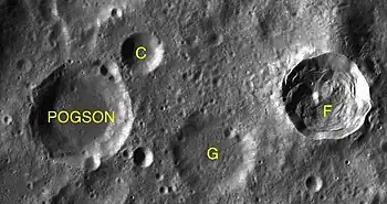 Por convención estos elementos son identificados en los mapas lunares poniendo la letra en el lado del punto medio del cráter que está más cercano a Pogson.