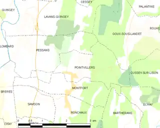 Pointvillers era una comuna francesa situada en el departamento de Doubs, de la región de Borgoña-Franco Condado, que el 1 de enero de 2017 fue suprimida al fusionarse con la comuna de Montfort, formando la comuna nueva de Le Val.[3]