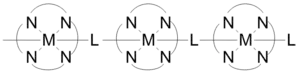 También puede describirse como un polímero cuyas unidades de repetición son complejos de coordinación. Los polímeros de coordinación contienen la subclase de redes de coordinación que son compuestos de coordinación que se extienden, a través de entidades de coordinación repetidas, en 1 dimensión, pero con enlaces cruzados entre dos o más cadenas individuales, bucles o espiroenlaces, o un compuesto de coordinación que se extiende a través de entidades de coordinación repetidas en 2 o 3 dimensiones. Una subclase de éstos son los marcos metalorgánicos, o MOF, que son redes de coordinación con ligandos orgánicos que contienen huecos potenciales.[1]