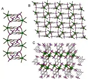 - Esta obra contiene una traducción derivada de «Coordination polymer» de Wikipedia en inglés, concretamente de esta versión, publicada por sus editores bajo la Licencia de documentación libre de GNU y la Licencia Creative Commons Atribución-CompartirIgual 4.0 Internacional.