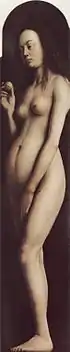 Se trata de los primeros desnudos monumentales en la pintura flamenca.[19]