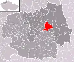 Se encuentra ubicada al este de la región, cerca de la orilla de los ríos Elba y Ohře, y de las regiones de Liberec y Bohemia Central.[1]