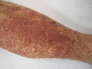 ![]() Vasculitis leucocitoclástica en una pierna | ||