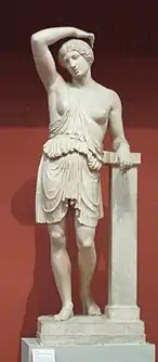 - Estatua de Aristión de Epidauro, en Olimpia, vencedor del pugilato infantil.[22]