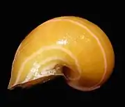- Rojizo y amarillo. Esta variante carece del color amarillo de base en la concha, por lo que las bandas de color púrpura - rojizo no cuentan con el pigmento amarillo, que normalmente hace que el color se vea marrón.