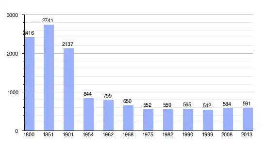 Los datos entre 1800 y 2013 son el resultado de sumar los parciales de las tres comunas que forman la nueva comuna de Pont-de-Montvert-Sud-Mont-Lozère, cuyos datos se han cogido de 1800 a 1999, para las comunas de Fraissinet-de-Lozère,[4] Le Pont-de-Montvert[5] y Saint-Maurice-de-Ventalon[6] de la página francesa EHESS/Cassini. Los demás datos se han cogido de la página del INSEE.[7]