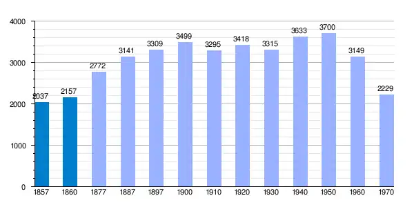 | Gráfica de evolución demográfica de Pontones[1] entre 1857 y 1970 |