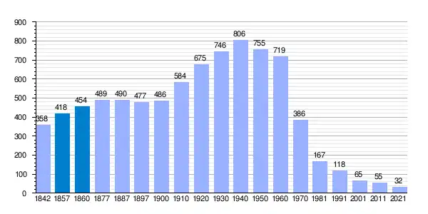 A mediados del siglo XIX, concretamente en 1857 , el municipio contaba con una población de 418 hab. En 1877 ascendió a 475 hab, en 1897 el municipio cierra el siglo con 476 habitantes.