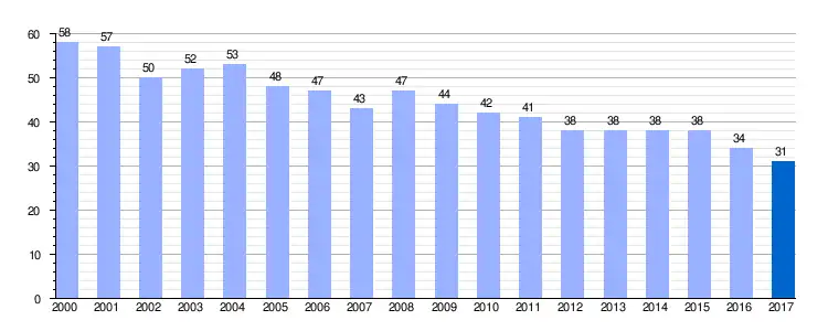 | Gráfica de evolución demográfica de Portela de Aguiar entre 2000 y 2017 |